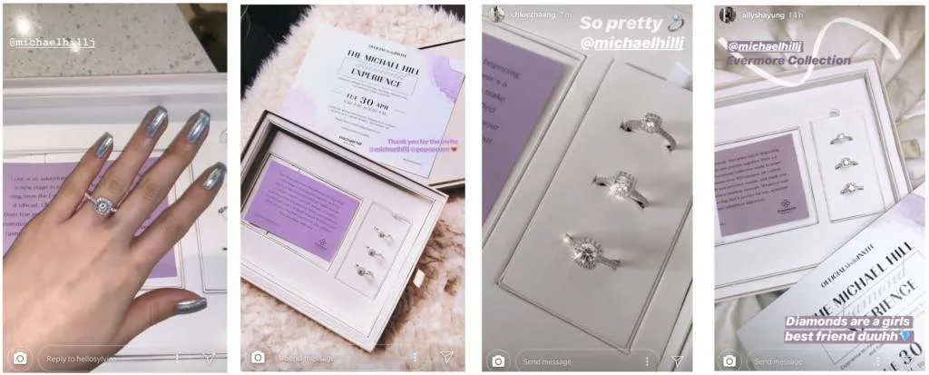 We started by surprising the attendees with an invitation package that included a stunning box of diamond engagement rings. This generated quite the buzz on Instagram Stories with their unboxing videos. The event began at a Michael Hill store in Yorkdale, where attendees got to interact with each other and the merchandise. We then made our way to Ladurée to enjoy a catered dinner while learning more about the company’s history and products.